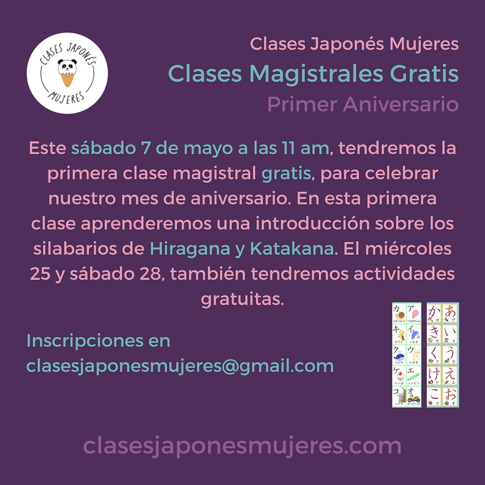 Queridas estudiantes y amigas de Clases Japonés Mujeres, tengo el agrado de presentarles una de las actividades gratuitas que estaremos realizando en el mes de mayo 2022, ¡el mes de nuestro aniversario! Inscripciones en: clasesjaponesmujeres@gmail.com